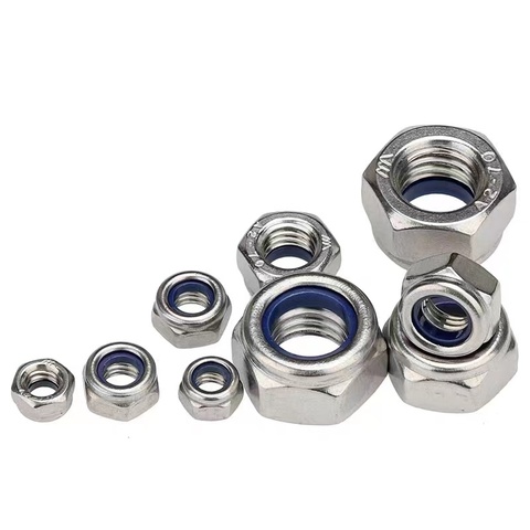 Tuerca autoblocante hexagonal de acero inoxidable, tuerca de bloqueo Hexagonal de nailon DIN985,